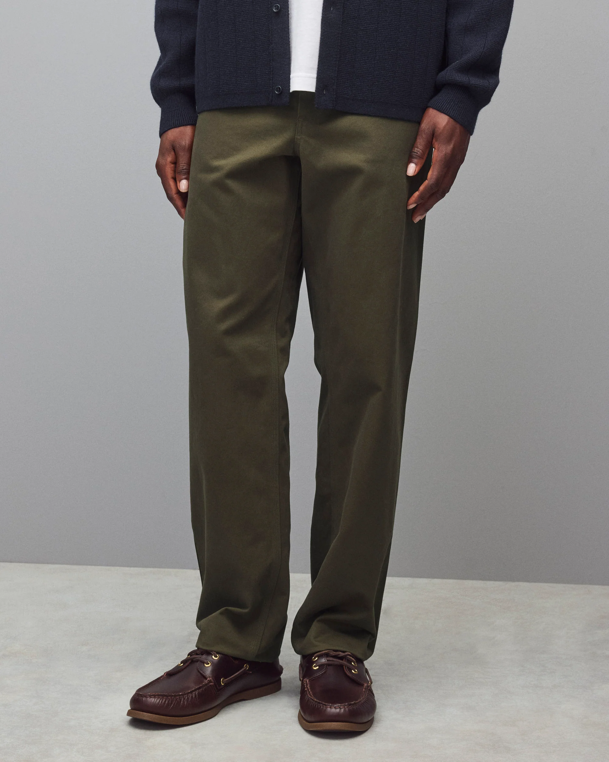 Our Ivy silhouette features a straight leg with a generous fit through the thigh. This tailored pant is crafted from a cotton chino twill that's washed for a softer, lived-in feel. Designed with a belt loop waistband, YKK metal zip fly, corded slant pockets, rear welt pockets, and plain cuffs.