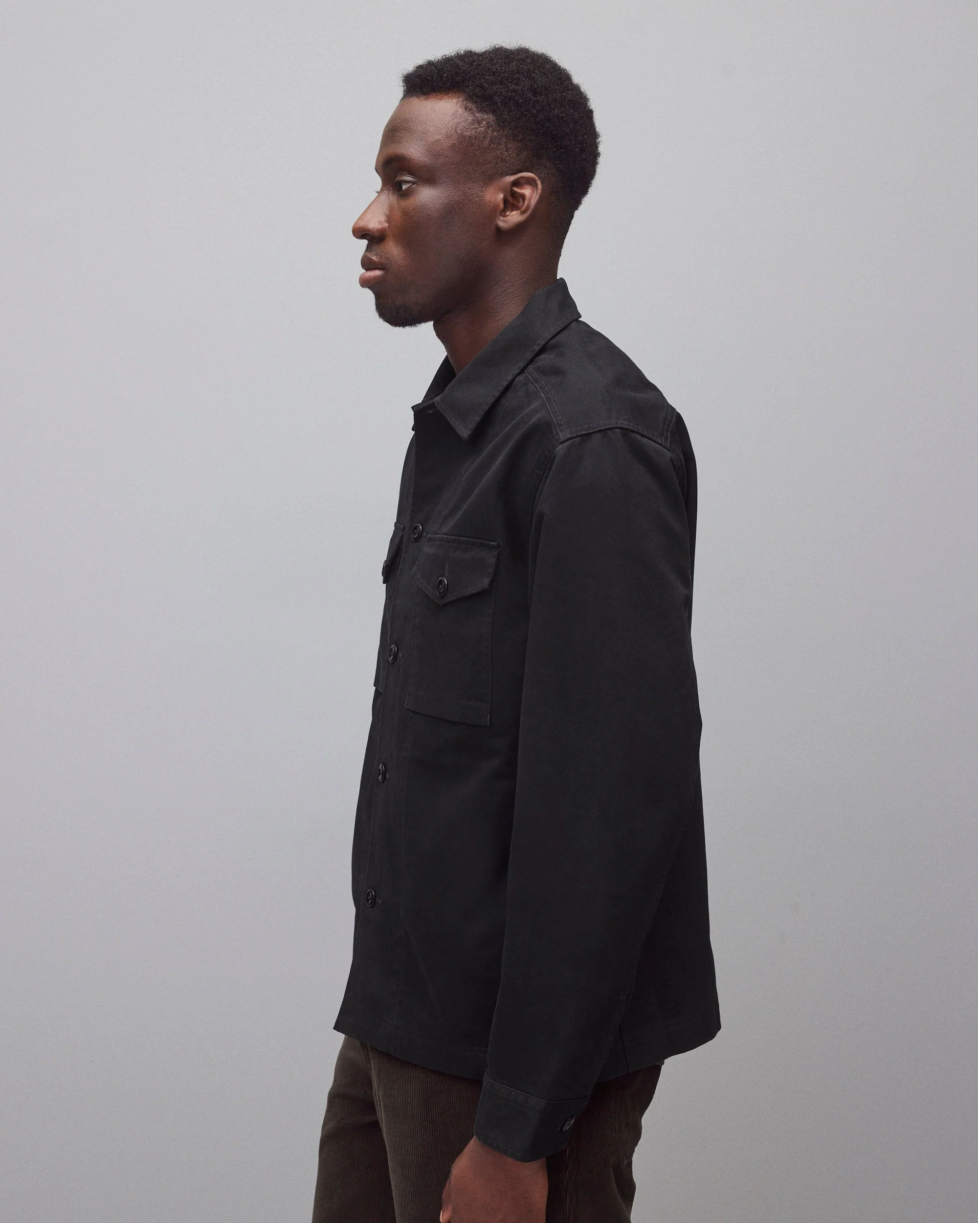 This field shirt is crafted from a midweight cotton chino that's washed for a vintage, lived-in feel. Designed in a boxy standard fit, with a semi-spread collar, large corozo logo buttons, flap chest pockets, on-seam side pockets, and adjustable button cuffs. Finished with flat felled seams and a wide military-style stitch placket.