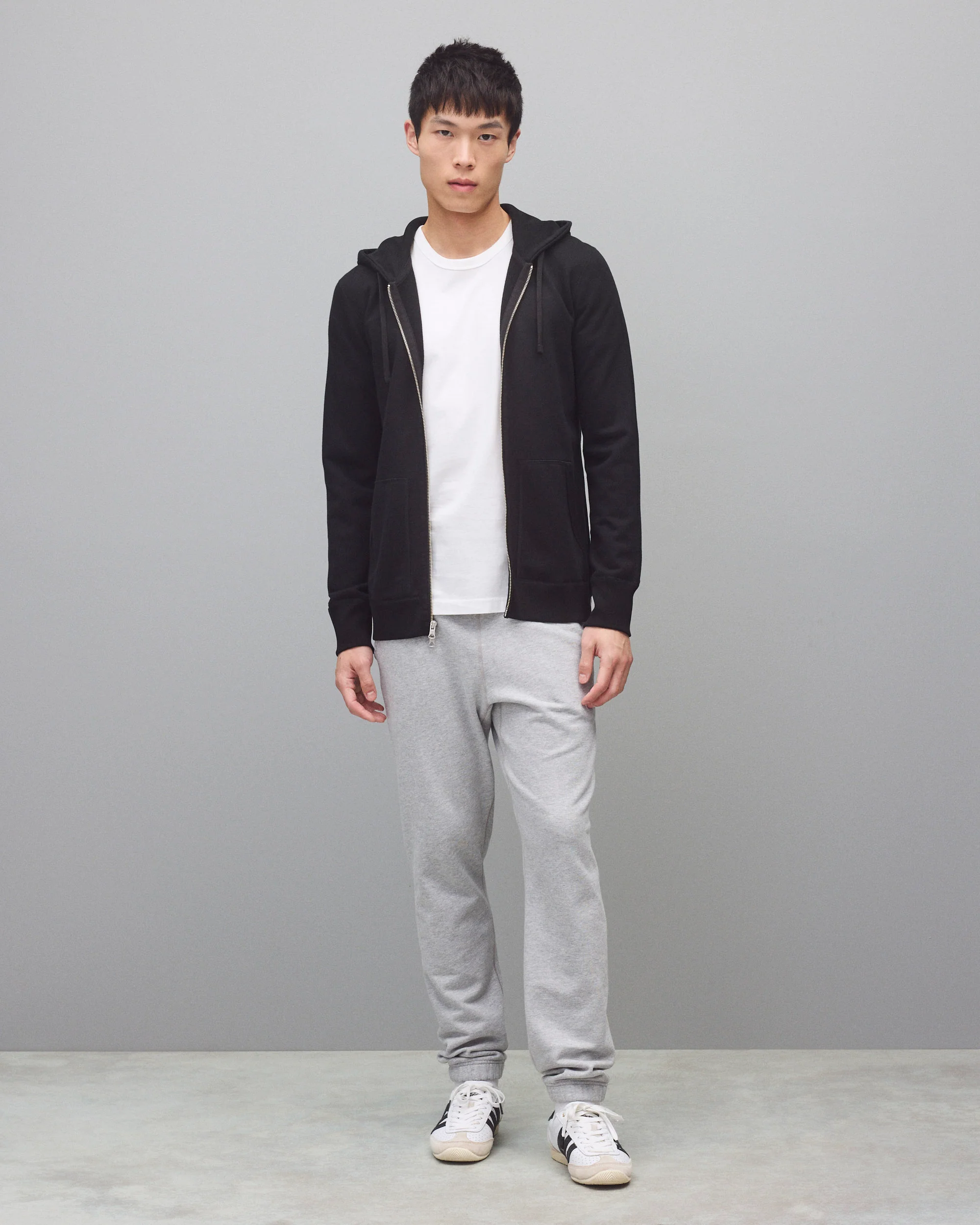 Our signature zip hoodie is made from premium Midweight Terry for an ideal balance of comfort and structure. Designed with a trim athletic fit, a dual-layer hood, semi-raglan sleeves, a heavy gauge two-way YKK zipper, a rib-bound front pocket, premium rib, and signature flatlock construction.