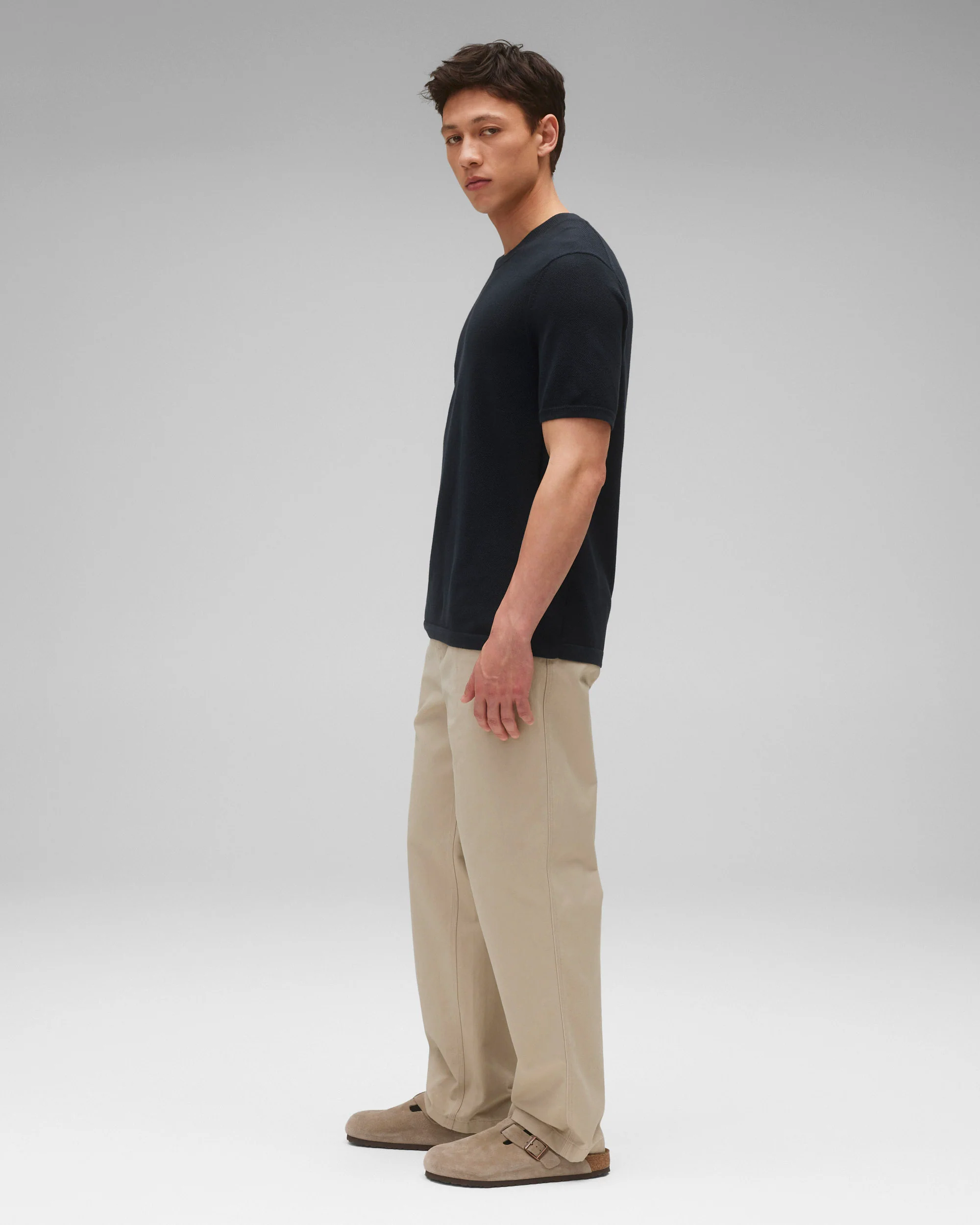 This pique knit T-shirt is crafted from fine-gauge Supima cotton, prized for its exceptional softness, strength, and breathability. Designed in a standard fit with fully fashioned seams, it features a 1x1 rib collar, side gussets, and full needle cuffs and hem.